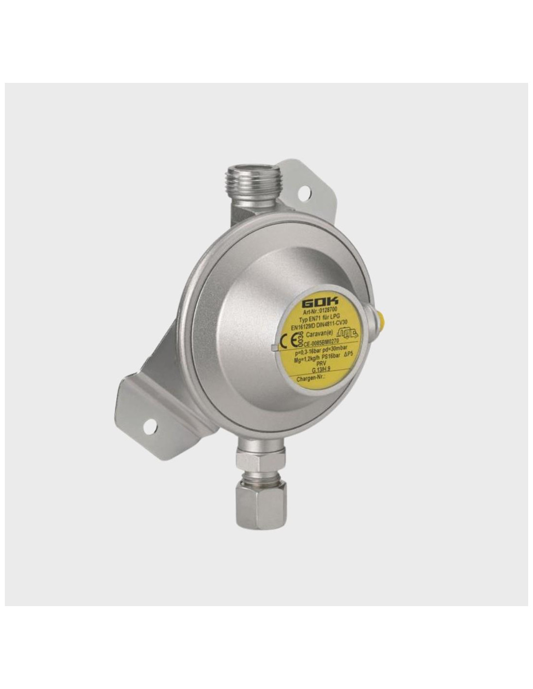 Redutor de gás 1.2Kg/h 30mbar BasicOne EN71 M20x150 M x compr fit 10 prv Gok