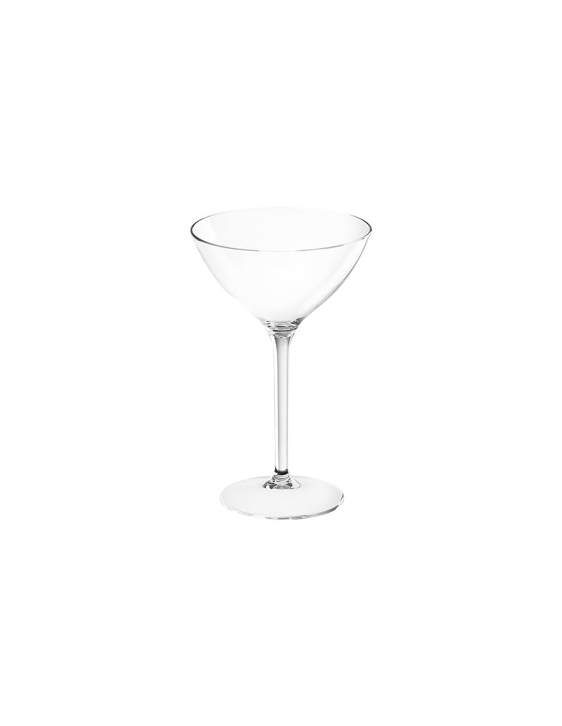 Copo inquebrável e muito resistente para Martini, vinho ou vinho espumante de 300ml de capacidade. Cor transparente, simula o vidro. Feito de Tritan, 100% reciclável.