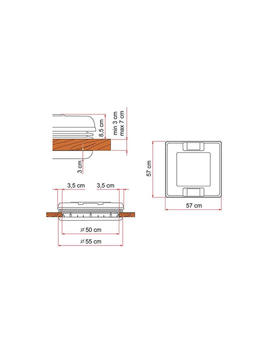 Grande clarabóia, para a medida de 50 x 50 cm, ideal para caravanas e autocaravanas.