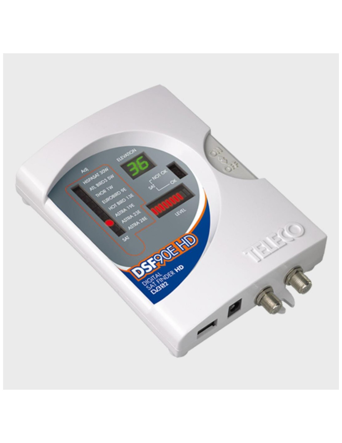 O DSF90 HD é a solução para este problema. Possui um medidor que indica imediatamente a força do sinal que está sendo recebido do satélite desejado. Ao contrário dos alinhadores de parabólica comuns, não há atraso e, novamente ao contrário desses sistemas, o DSF90 HD também diz se o satélite que você encontrou é o certo. Existem 8 satélites pré-programados em memória.