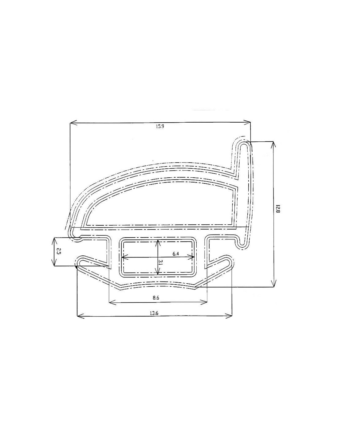 Medida total 15,9mm //Medida encaixe 8,6mm Borracha de guarnição de porta. Vendida a Metro