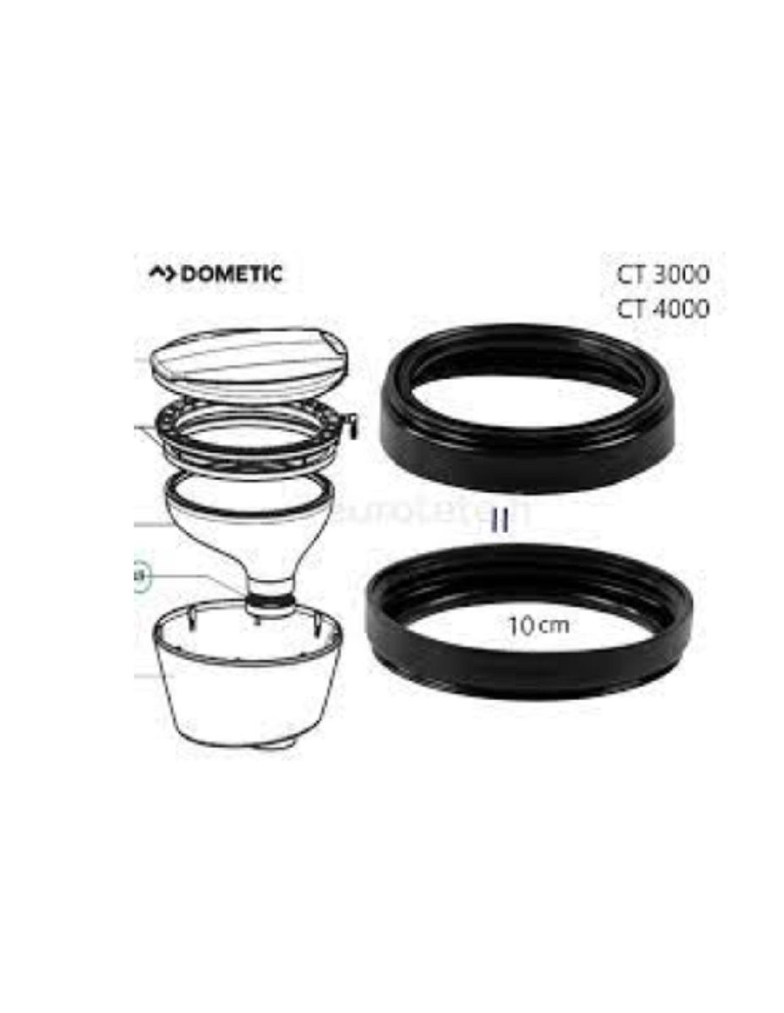Borracha selante colocada entre a sanita e a cassete para Sanitas Dometic