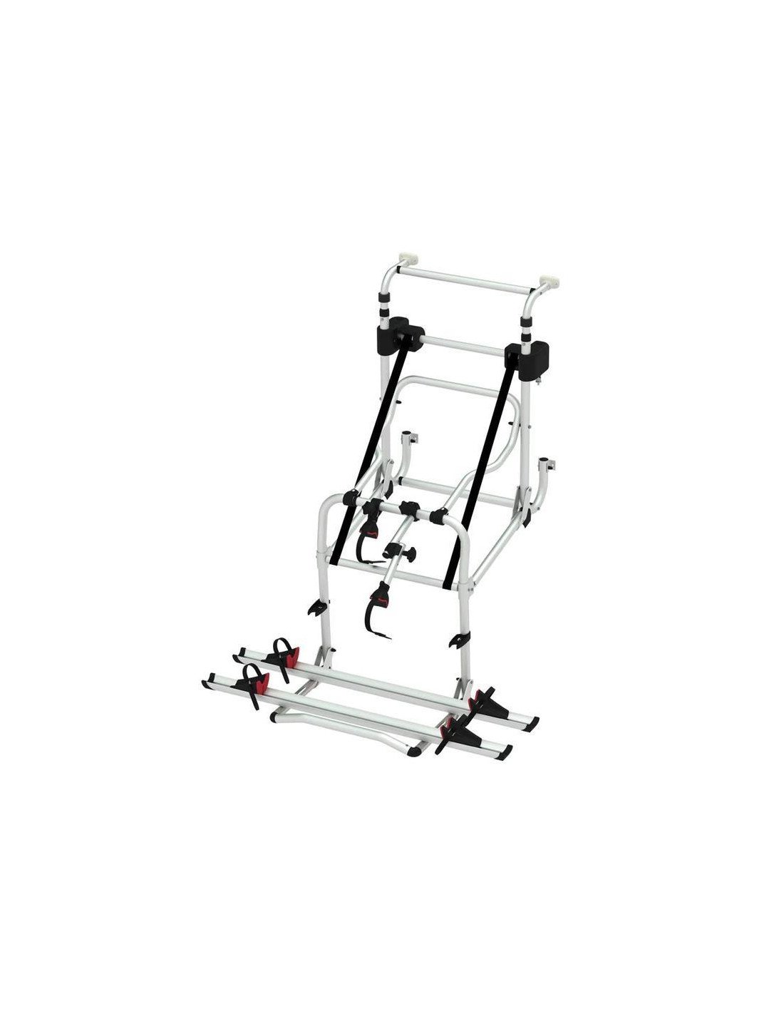 Este porta-bicicletas foi concebido para transportar 2 bicicletas elétricas e é o único no mercado que possui um sistema de guincho que permite baixar o quadro de suporte da bicicleta até 77 cm, permitindo assim um fácil carregamento das bicicletas.