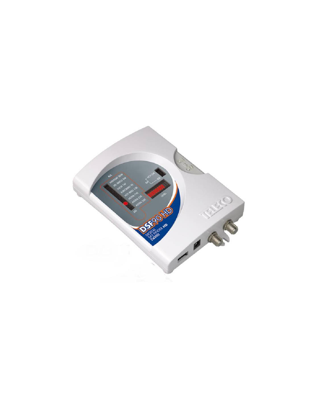 O DSF90 HD é a solução para este problema. Possui um medidor que indica imediatamente a força do sinal que está sendo recebido do satélite desejado. Ao contrário dos alinhadores de parabólica comuns, não há atraso e, novamente ao contrário desses sistemas, o DSF90 HD também diz se o satélite que você encontrou é o certo. Existem 8 satélites pré-programados em memória.