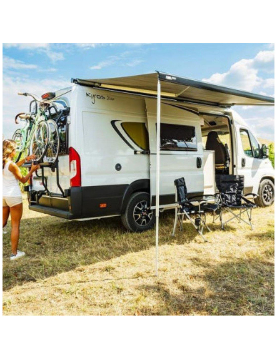 O toldo Fiamma F80s 3.7 m é a solução ideal para a instalação no teto, com excelente desempenho graças à guia tripla à frente e à dupla predisposição dos LEDs. Integra-se perfeitamente na bitola do veículo. Este toldo pode ser motorizado e também tem uma catraca e ilhós.