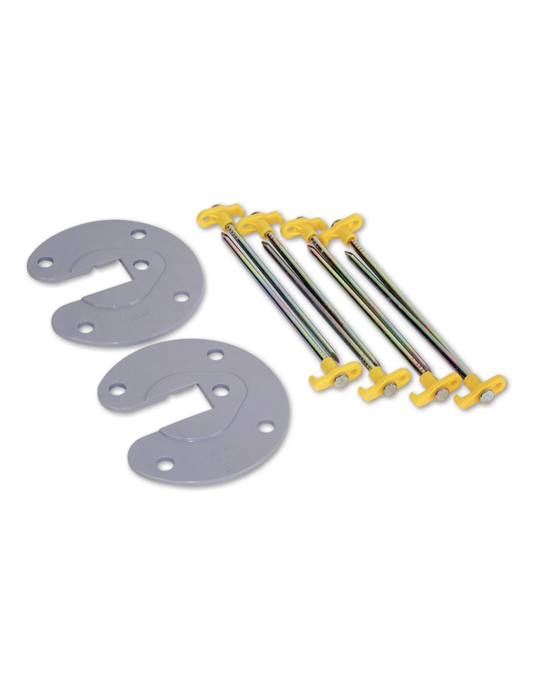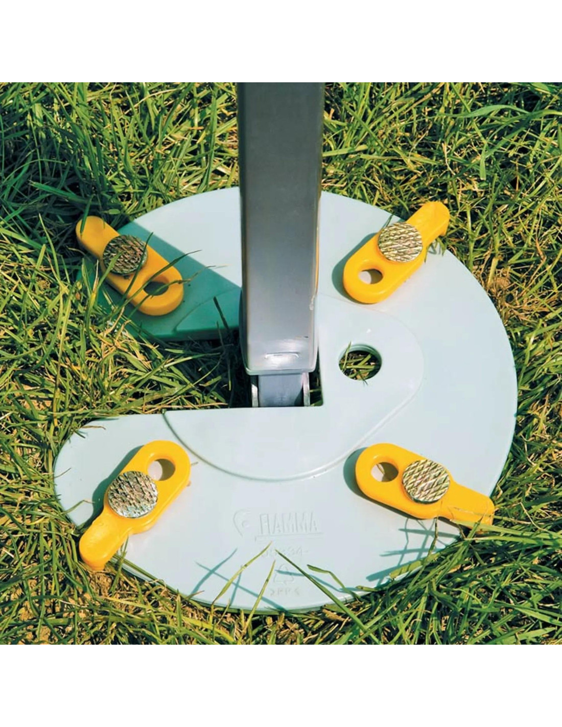 As peças de encaixe Fiamma Kit Awning Plate para barras de toldo são ideais para fixar os pés dianteiros ao chão, o que aumenta a resistência ao vento. Adapta-se a todos os tipos de pés de toldo Fiamma e Thule/Omnistor.