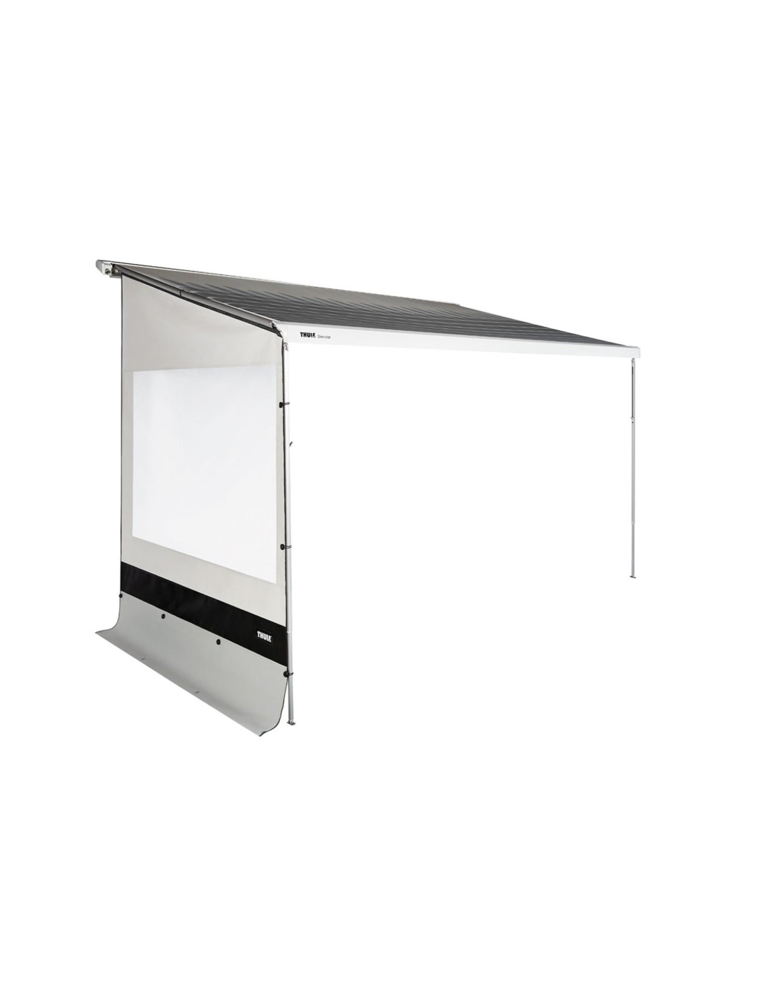As paredes laterais Rain Blocker G2, adequadas para todos os toldos Thule Omnistor, oferecem proteção ideal contra vento e chuva. A montagem das paredes laterais no toldo pode ser realizada de forma fácil e rápida. As paredes laterais são deslizadas em um trilho Keder que está integrado no tirante de alumínio fornecido. Esses tirantes de alumínio de duas peças recém-desenvolvidos são usados ??entre a caixa do toldo e o perfil frontal.