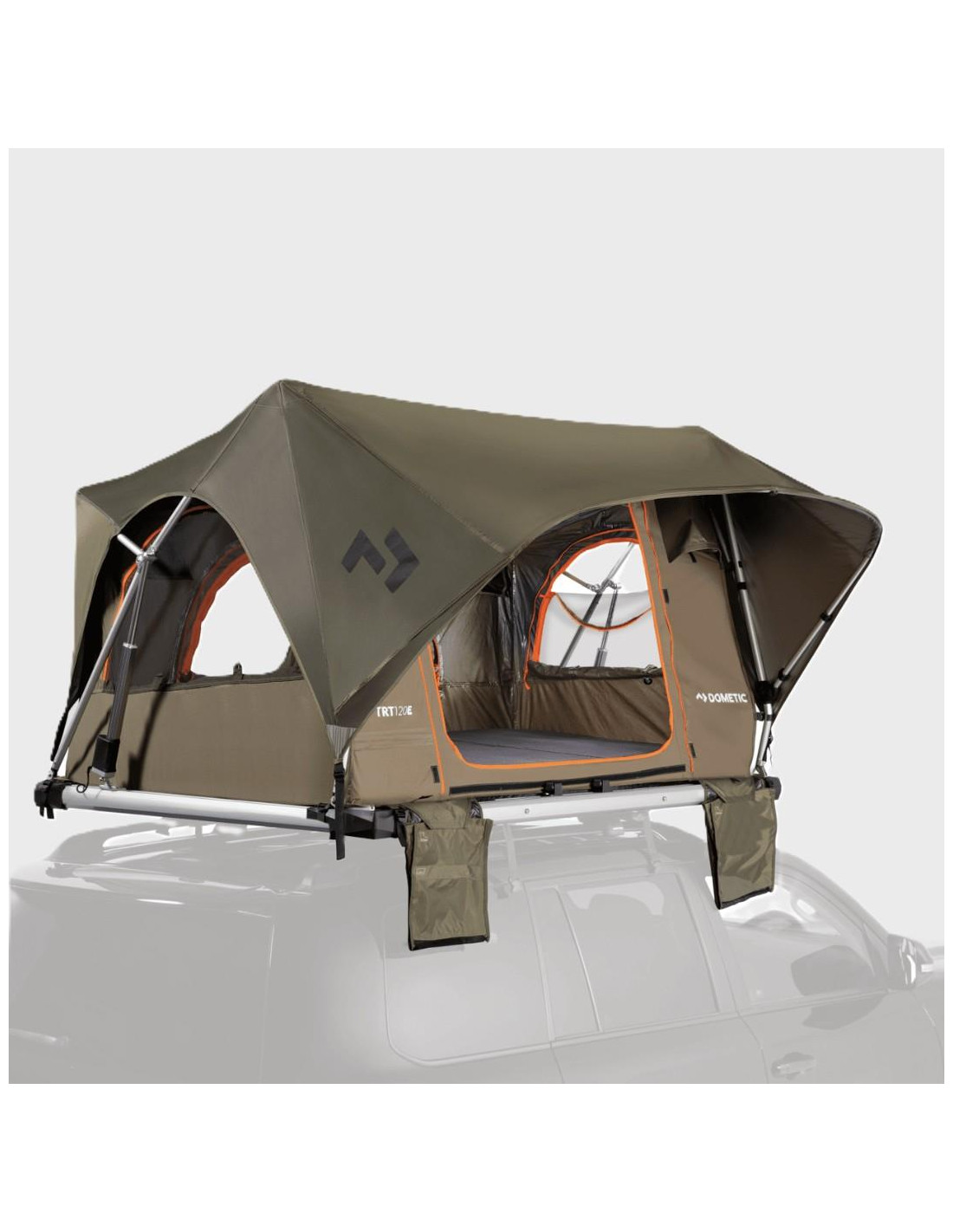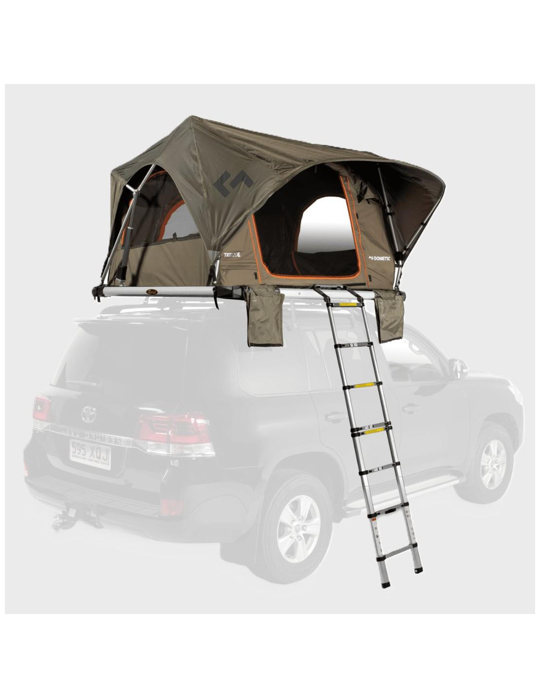 O Dometic TRT120E pode ser configurado em questão de minutos graças ao seu funcionamento alimentado a 12 V e ao controlo remoto (incluído). Uma noite de sono tranquila é garantida com o seu colchão de espuma de alta densidade com 5 cm de espessura e tamanho suficiente para acomodar confortavelmente duas pessoas. A entrada na tenda é fácil graças à escada telescópica leve de alumínio.