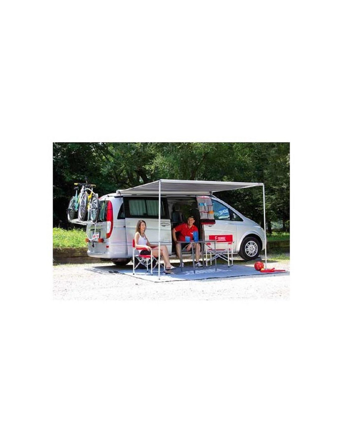 O F35 pro 300 da Fiamma é um toldo leve e robusto para carrinhas. Com a sua caixa em alumínio anodizado e o seu funcionamento manual, é prático e fácil de manobrar. Dotado de pés de apoio ao solo integrados no rolo, pode ser instalado em todos os tipos de monovolumes, carrinhas transformadas (VW Transporter (T3/T25, T4, T5, T6), Renault Trafic, etc.) e todos os tipos de veículos equipados com uma calha de fixação.